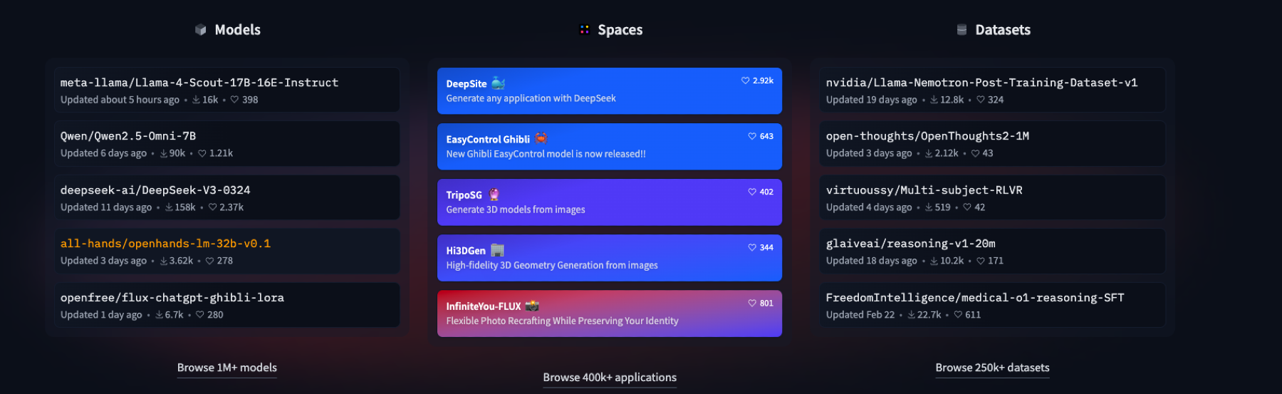 Incluso existe la versión gratuita para que crees tu imagen de estudios Ghibli, como todo el mundo lo hizo hace un par de semanas. A continuación una captura de pantalla de su página web https://huggingface.co/.