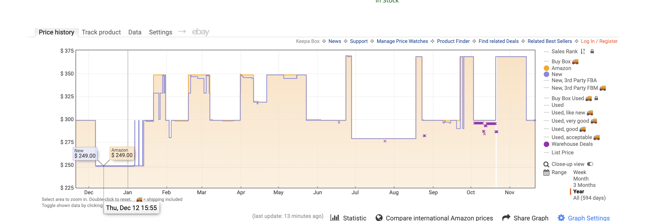 Este es un ejemplo: podemos comprobar el precio de los últimos 6 meses, último año y el histórico desde que se empezó a vender en Amazon.