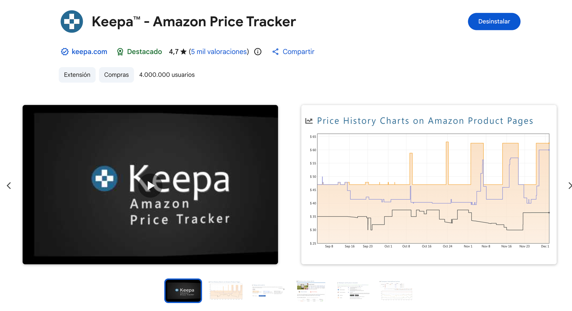 - Una vez ya instalada, está lista para ser usada. Solo ve a www.amazon.com o www.amazon.com.mx, busca tu producto y ¡compara los precios a lo largo del tiempo!